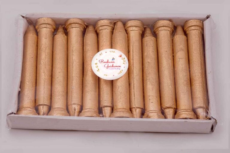 These anointed candles helps in stabilizing solar chakra by promoting balanced chemical imbalances. It promotes joy, enthusiasm and creates an aura of delight. Lighting these joyful candles constantly, improves self-confidence, prosperity and decision-making powers.